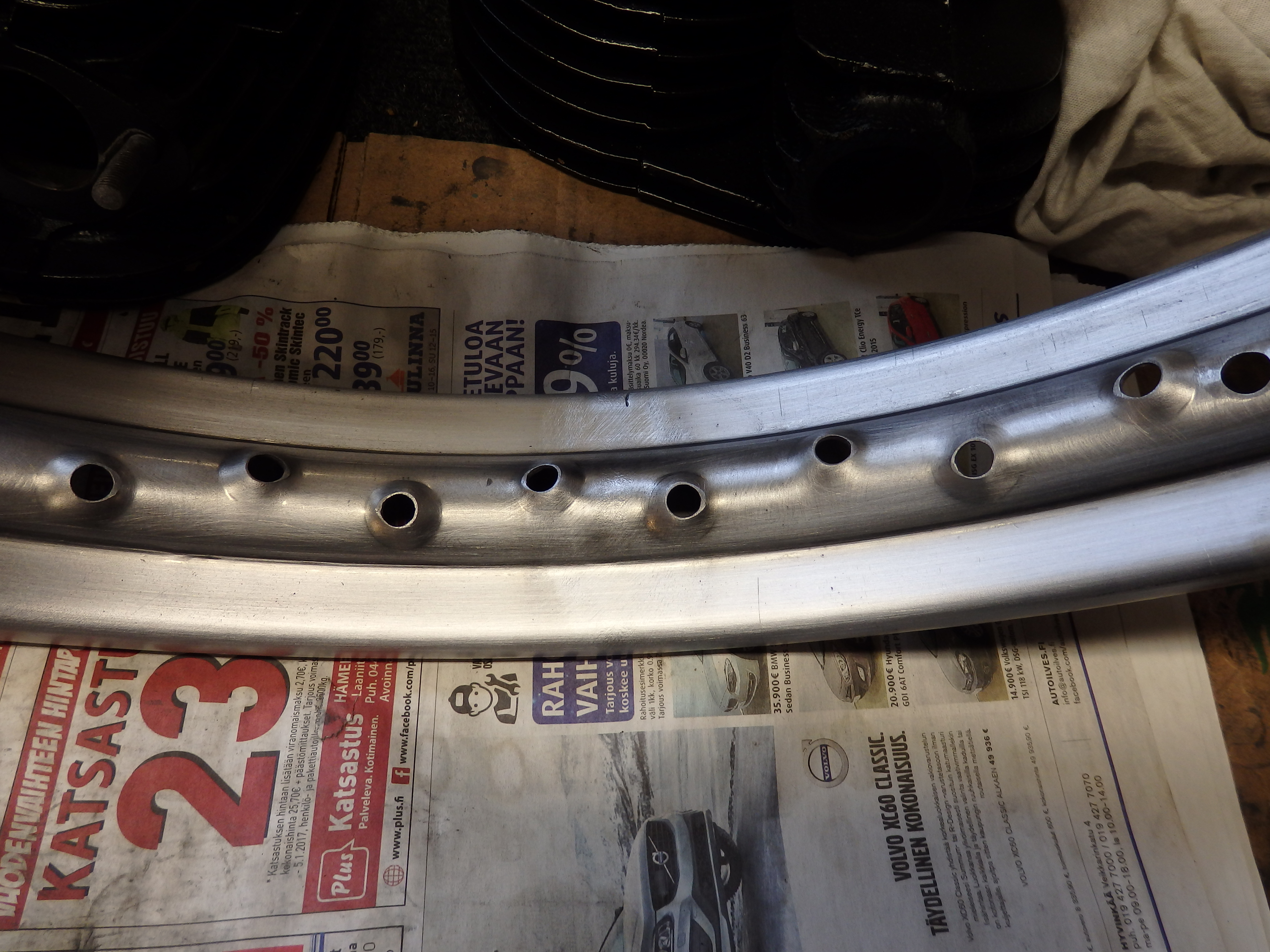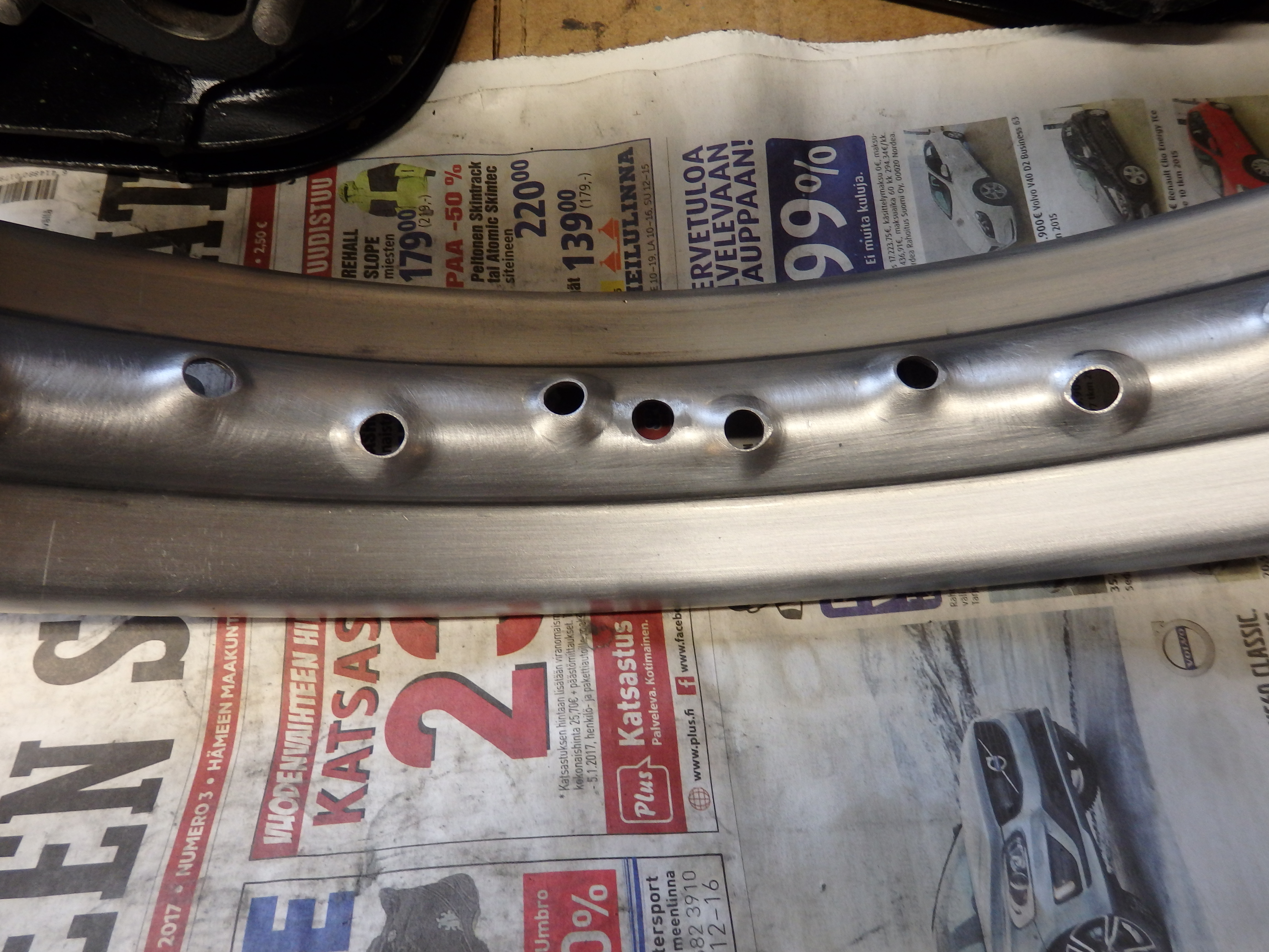 Piparinapaan ei ole helposti saatavana laadukkaita kehiä. Pinnojen porauksen suunta on BMW tyyli 30-luvulta. Tapa hävisi lännestä kai jo toisen maailmansodan jälkeen. Saksasta vois vintage BMW harrastajien kautta löytyä uustuotantona. Italiasta tehtaalta kun kysyin niin tuumasivat että tuu rekalla hakeen takaoven lastauslaiturilta - he pyöräyttää muutaman sadan erän spesiaali porauksella :mrgreen: