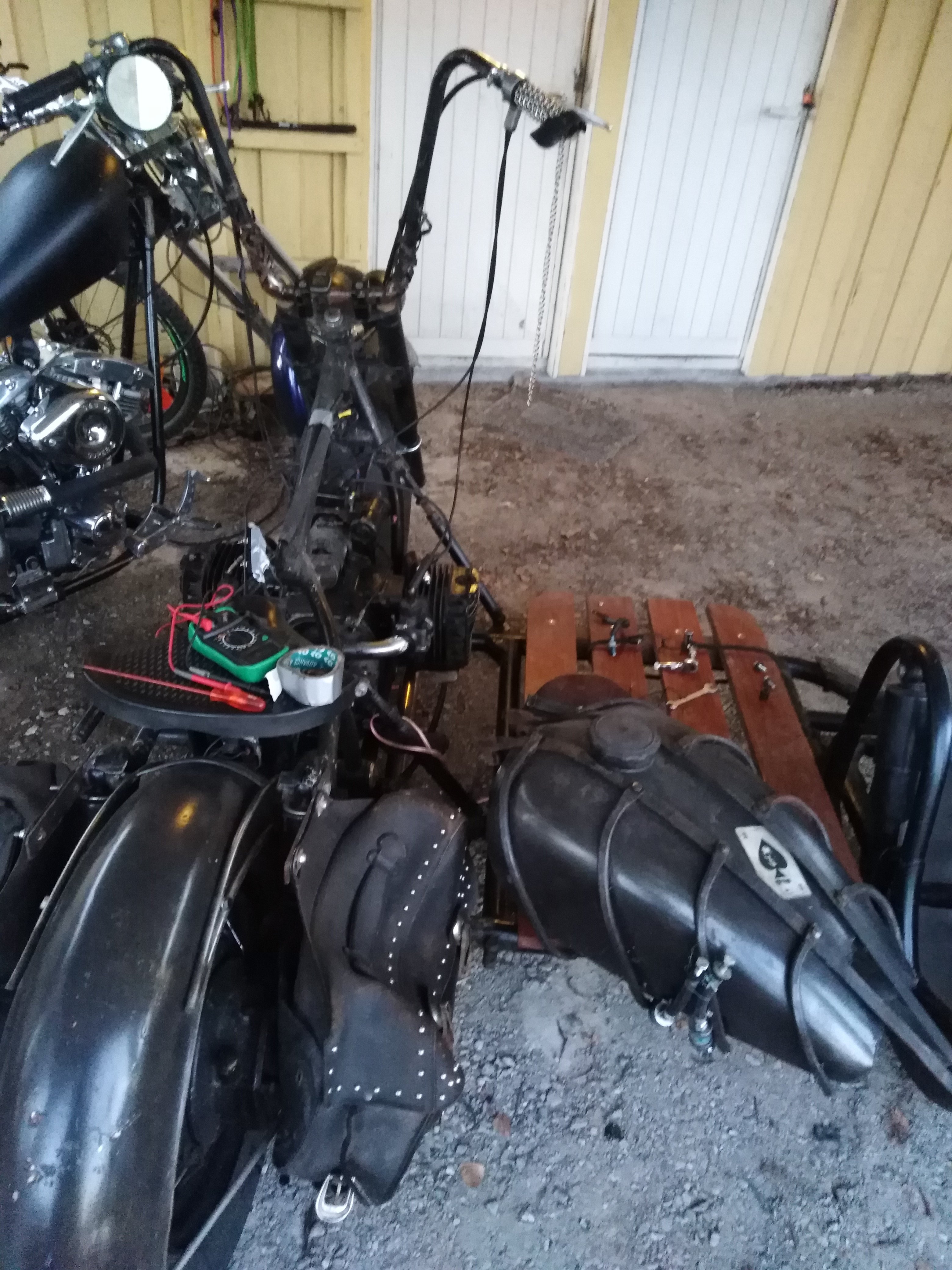 tankki lähti helposti irti ja pääsin käsiksi piuhoihin. Niissä ei ollut mitään epäilyttävää, mutta virtakytkimen liittimet oli kyllä epäilyttävät. Lienee kytkimessä oli vika.