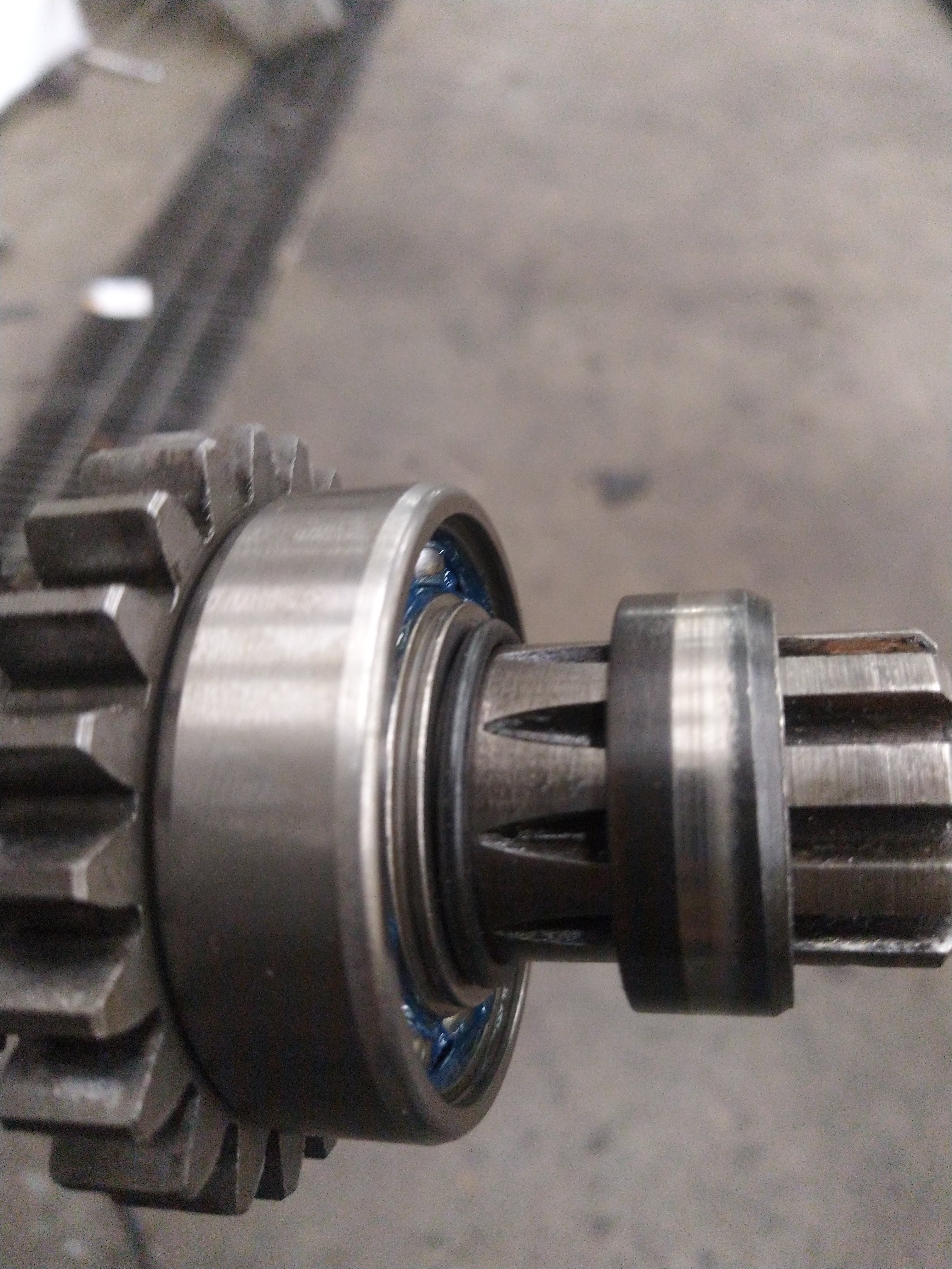 isompi pyörii akselin ympärillä kun on laakeri paikallaan, tuo oikea ei pyöri vaan jää sisäkoolin ja akselin laakerikaulan pohjan väliin jämptisti. nelosen ratas pyörii nyt sit tätä levyä vasten joka ei pyöri mukana.